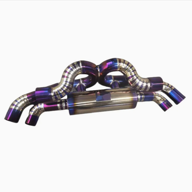 டைட்டானியம் அலாய் வெளியேற்ற குழாய்கள் எஃகு விட 40% இலகுவானவை. (போர்ஸ் 911 டர்போ எஸ்: டைட்டானியம் அலாய்மஃப்லர்ஸ்எடையைக் குறைத்தல் 12 கிலோ, மிகவும் துல்லியமான ஒலி சரிப்படுத்தும், மற்றும் 0-100 கிமீ/மணி முடுக்கம் நேரம் 0.2 வினாடிகளால் சுருக்கப்படுகிறது.) மஃப்லர் 32% இலகுவானது, இது வாகனத்தின் ஒட்டுமொத்த சுமையை கணிசமாகக் குறைக்கிறது.